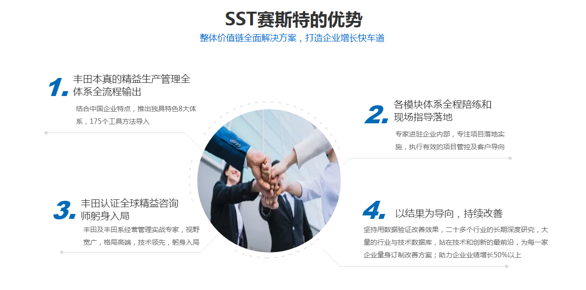 賽斯特集團(tuán)(SST)是豐田為背景的一家致力于企業(yè)管理咨詢、培訓(xùn)服務(wù)為主的國際化管理咨詢機(jī)構(gòu),依托于精益發(fā)源地豐田公司為背景的專家團(tuán)隊(duì),專業(yè)從事精益生產(chǎn)培訓(xùn)和咨詢服務(wù)的管理咨詢機(jī)構(gòu),中國本土唯一一家融合日本豐田,北京現(xiàn)代,韓國三星等專家為一體的咨詢機(jī)構(gòu)。旗下?lián)碛校禾旖蛸愃固仄髽I(yè)管理咨詢公司,天津眾益天成管理咨詢公司,北京冠群精益管理咨詢公司,天津精益智能咨詢有限公司等四家分支機(jī)構(gòu)。 |